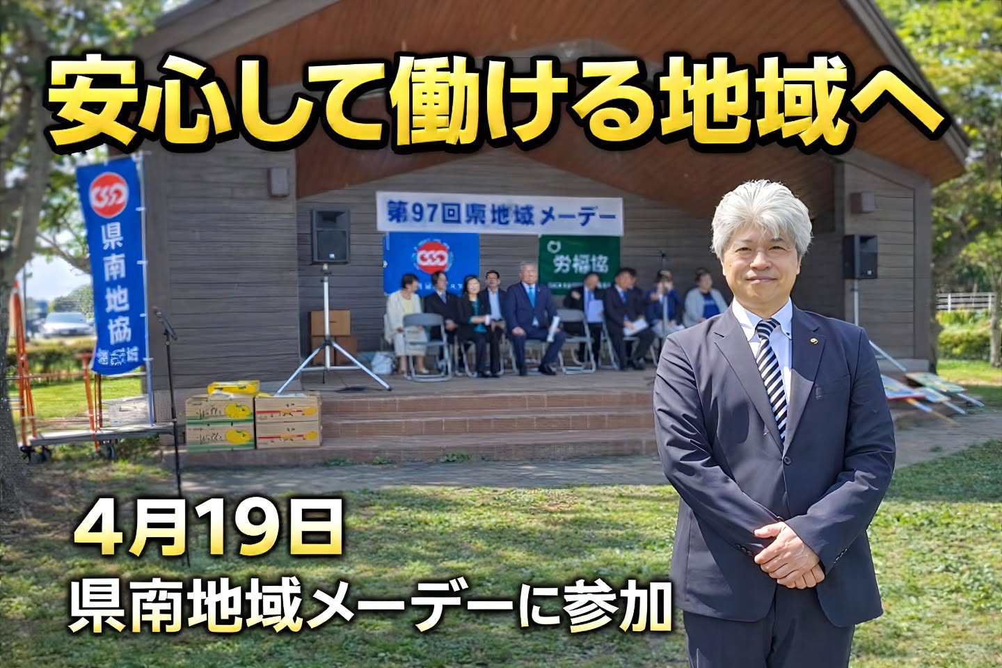 青空の下、多くの皆さまと共に、働く人の暮らしと地域の未来について思いを共有する、大切な時間となりました🌿 日々、地域や社会を支えてくださっている皆さまに、心から敬意を表します。