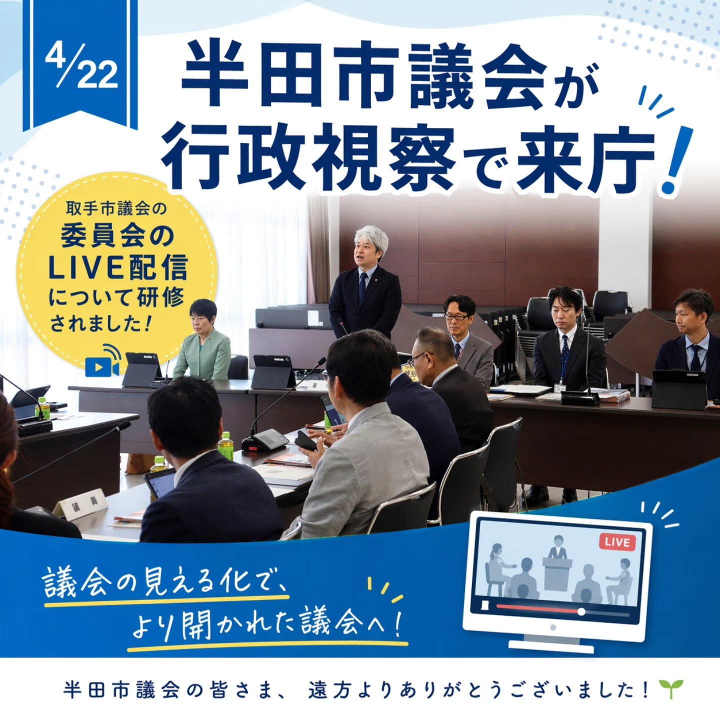 4月22日、半田市議会の皆さまが取手市役所へ行政視察にお見えになりました✨